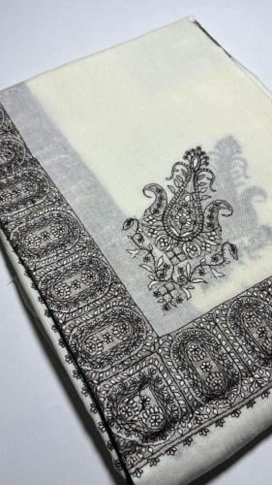 يأتي الشال بالون الأبيض المميز بعدة تطريزات يدوية.