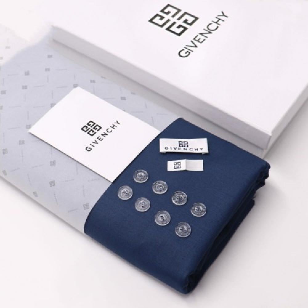 جميع الالوان قماش جودة عالية لا تكسر ولا يتغير لونه ابداً الطول 3,25 متر والعرض مترين (تكفي لثوب واحد)مع استيكرات الماركة وازاريير جيفنشي عليها شعار الماركة داخل كرتون الماركة المميز.